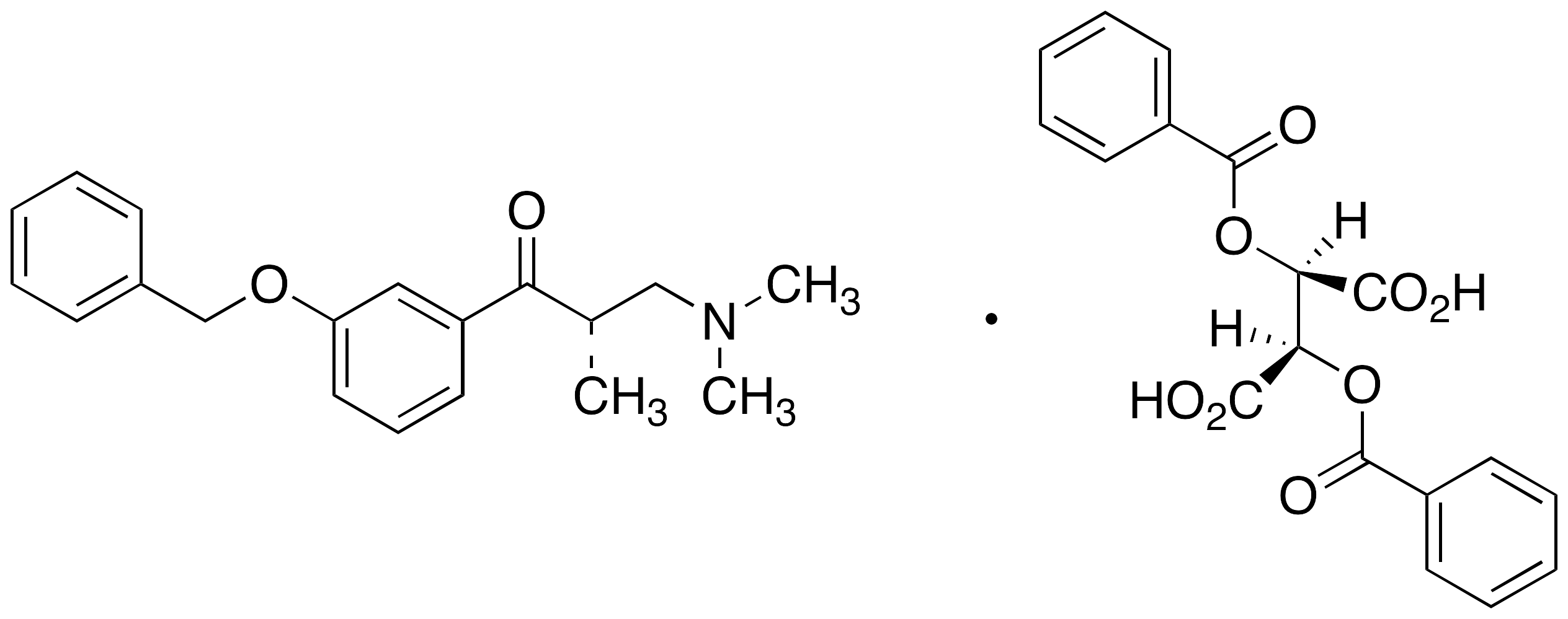 SMILES: C[C@@H](CN(C)C)C(=O)c1cccc(OCc2ccccc2)c1.OC(=O)[C@H](OC(=O)c3ccccc3)[C@@H](OC(=O)c4ccccc4)C(=O)O Purity: