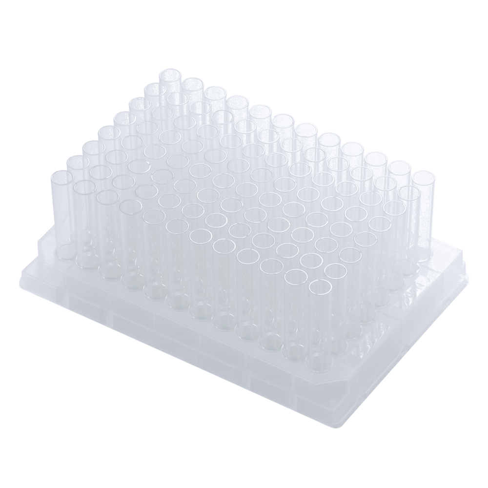 Microtitration plate, PP, with fixed and loose glass inserts, light, high purity and chemically inert, standardised plate dimensions 124 x 81 mm, with 96 cavities. Microtitration plates, PP, standardised plate dimensions 124 x 81 mm, without inserts for multiple use and self-configuration. Translucent plastic cover included in standard scope of delivery.