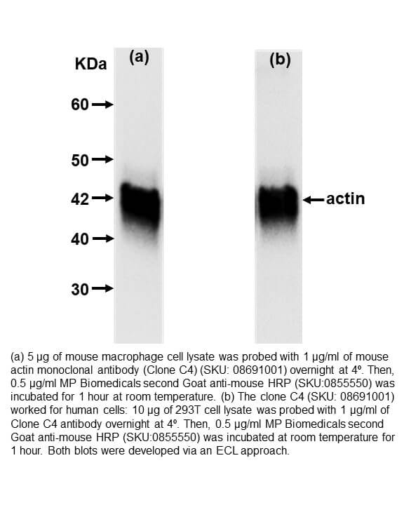 The monoclonal actin (clone C4) is a Mouse IgG1 (gamma 1 heavy/kappa light chain) monoclonal antibody (clone C4) to chicken gizzard actin.