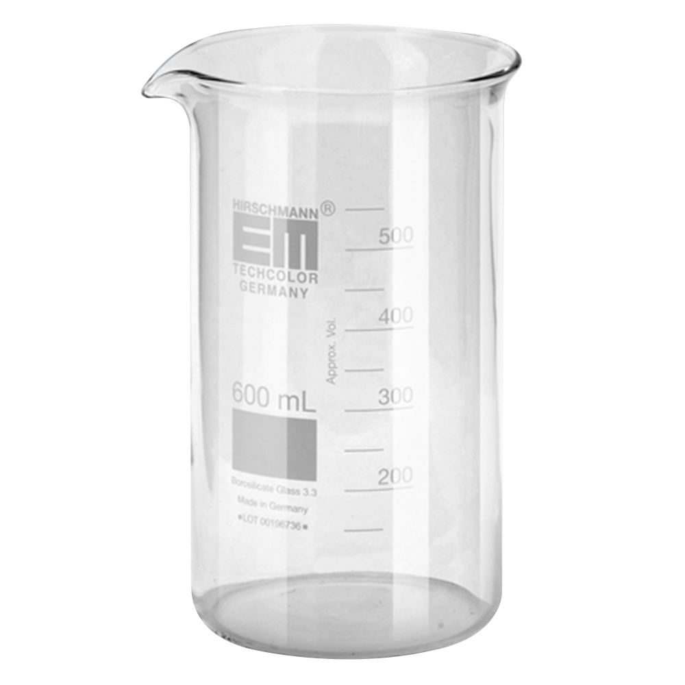 Borosilicate glass 3.3, white graduation, tall version, graduated and with spout, DIN 12 331