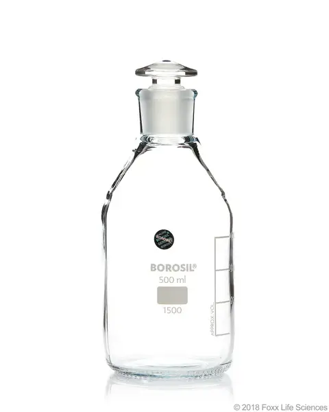 Borosil® Reagent Bottles Plain Narrow Mouth, Graduated with Interchangeable Glass Stopper, 24/29, 500 mL, 10/CS
