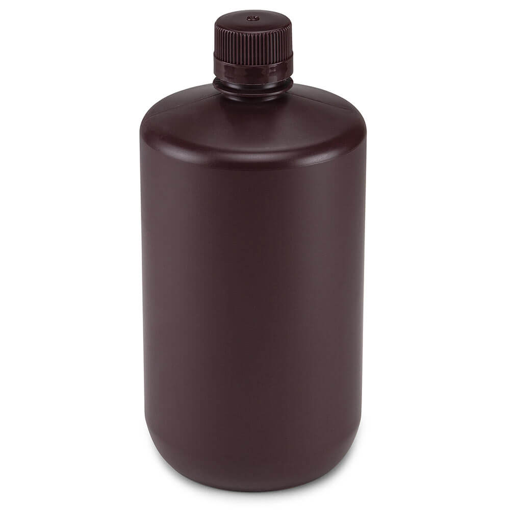 Bottle, Narrow Mouth, Amber PP Bottle, Attached PP Screw Cap, 2 Litres (0.5 Gallons)