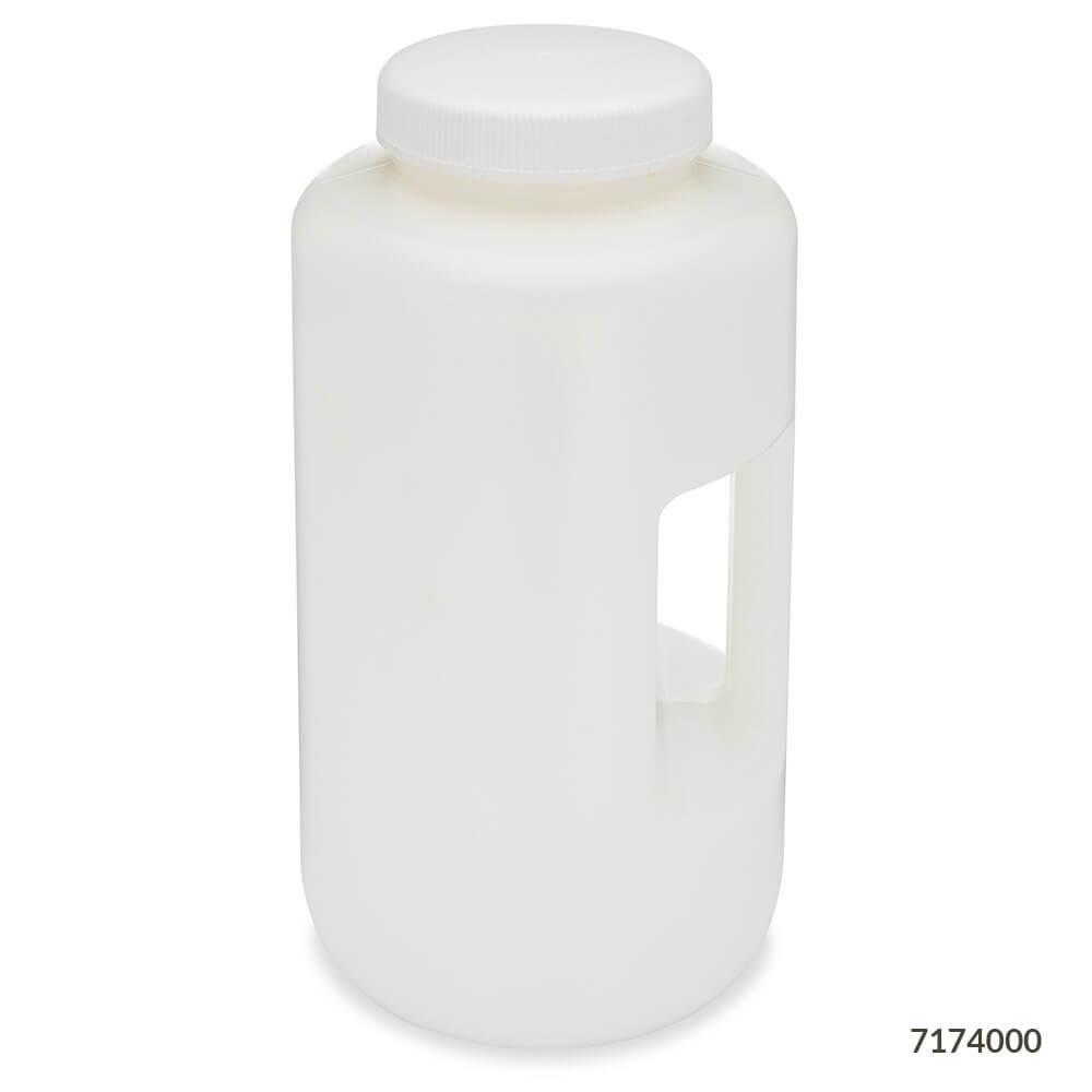 Bottle, Large Wide Mouth with Handle, Round, HDPE Bottle, 100mm PP Screw Cap, 4 Litres (1.0 Gallons)