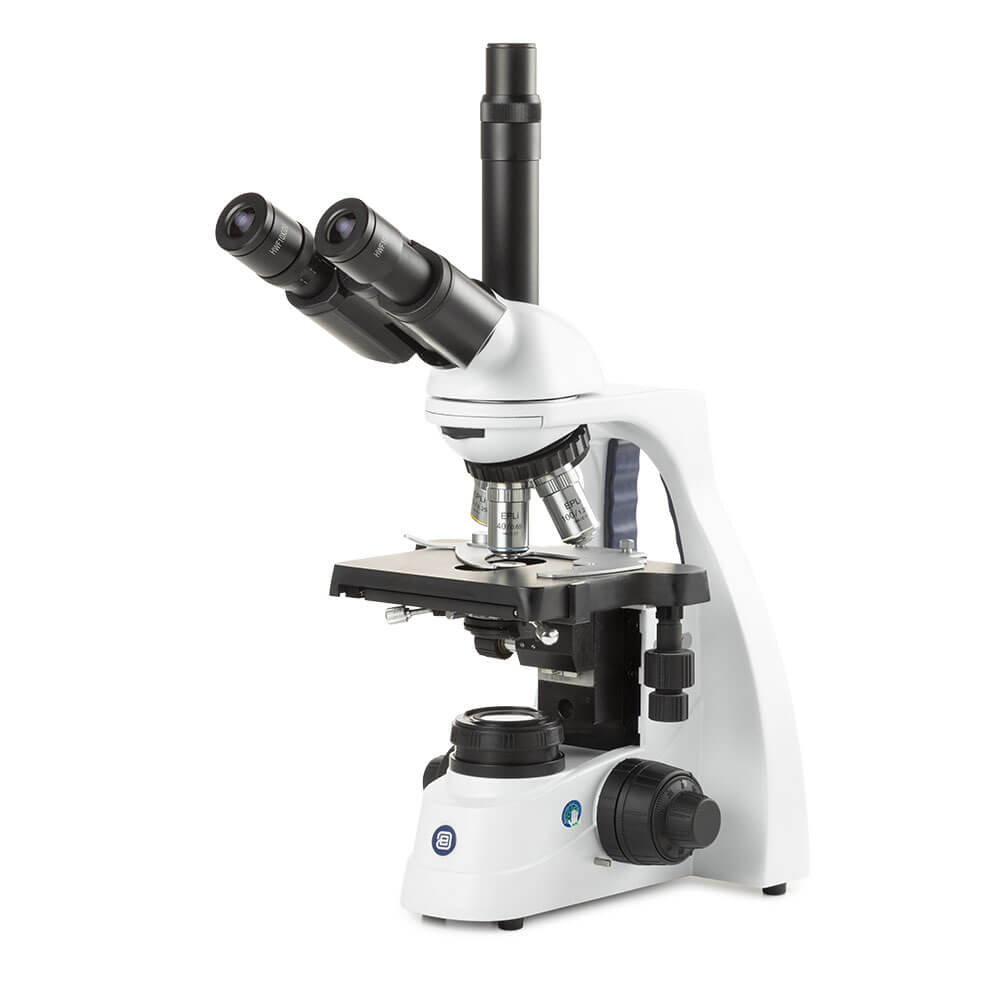 bScope trinocular microscope, HWF 10x/20mm eyepieces and quintuple nosepiece with E-plan EPLI 4/10/S40/S100x oil infinity corrected IOS objectives, 131 x 152/197mm stage with integrated mechanical 75 x 36mm rackless X-Y stage. 3W NeoLED™ Köhler illumination and integrated power supply. Supplied without rechargeable batteries