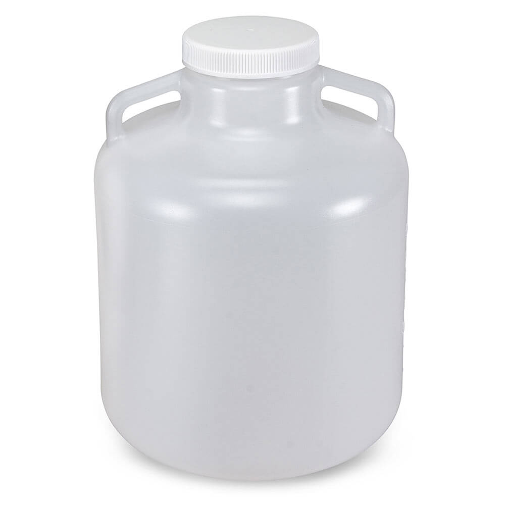 Carboy, Round with Handles, Wide Mouth, PP, White PP Screwcap, 10 Liter, Molded Graduations, Autoclavable