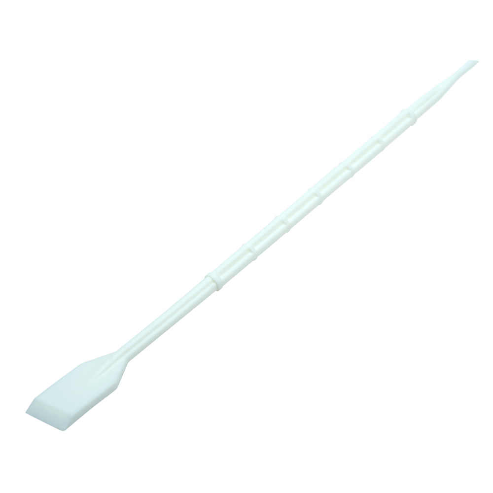 Unique double end design features a 19mm beveled edge flat blade on one end, and Narrow Blade on the other Narrow Blade is tapered to fit into 96 well plates or micro centrifuge tubes, and can be used to re-suspend stubborn pellets Flat Blade ensures even contact with growth surface of flasks and dishes