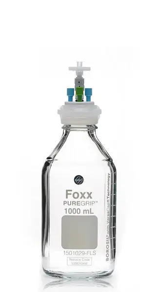 ChromCap™ 300 HPLC Solvent Reservoir System with VersaCap® GL45 and 1 L (1,000 mL) Clr. Glass Reagent Bottle, Class VI PTFE Adapter & Safety Air Inlet Valve, Four (4x) Ports- OD Tubing 3.2mm (1/8″) or 1.6 mm (1/16″), 1/EA