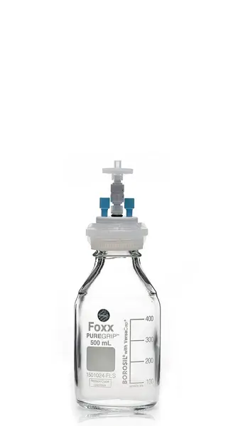ChromCap™ 300 HPLC Solvent Reservoir System with VersaCap® GL45 and 500 mL Clr. Glass Reagent Bottle, Class VI PTFE Adapter & Safety Air Inlet Valve, Two (2x) Ports- OD Tubing 3.2mm (1/8″) or 1.6 mm (1/16″), 1/EA