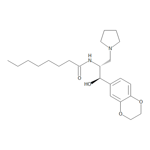 SMILES: CCCCCCCC(=O)N[C@H](CN1CCCC1)[C@H](O)c2ccc3OCCOc3c2 Purity: