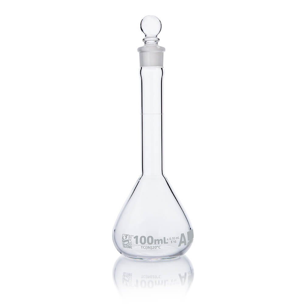 Flask, Volumetric, Wide Mouth, Globe Glass, 100mL, Class A, To Contain (TC), ASTM E288, 6/Box