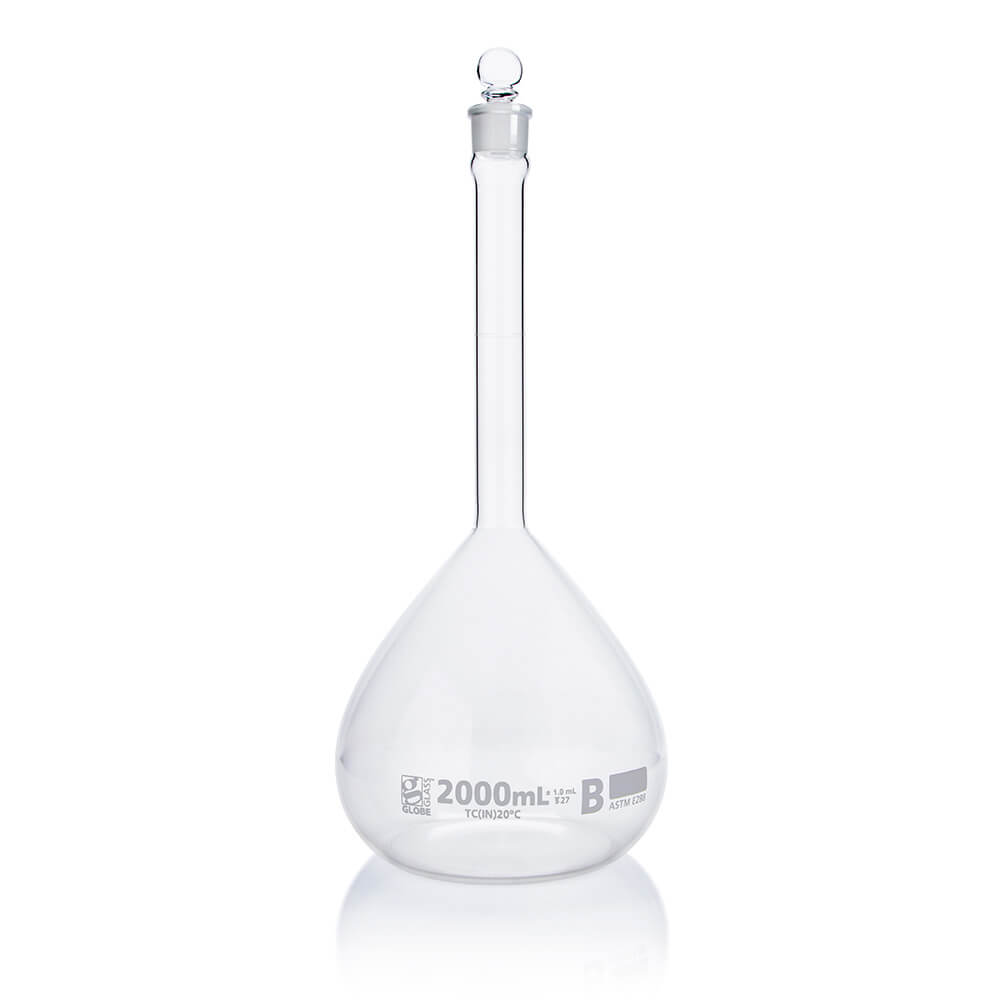 Flask, Volumetric , Globe Glass, 2000mL, Class B, To Contain (TC), ASTME288, 1/Box