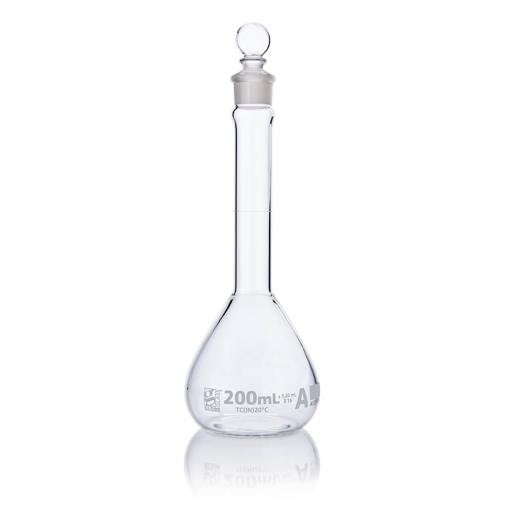 Flask, Volumetric, Wide Mouth, Globe Glass, 200mL, Class A, To Contain (TC), ASTM E288, 6/Box