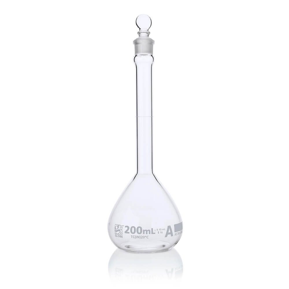 Flask, Volumetric , Globe Glass, 200mL, Class A, To Contain (TC), ASTM E288, 6/Box