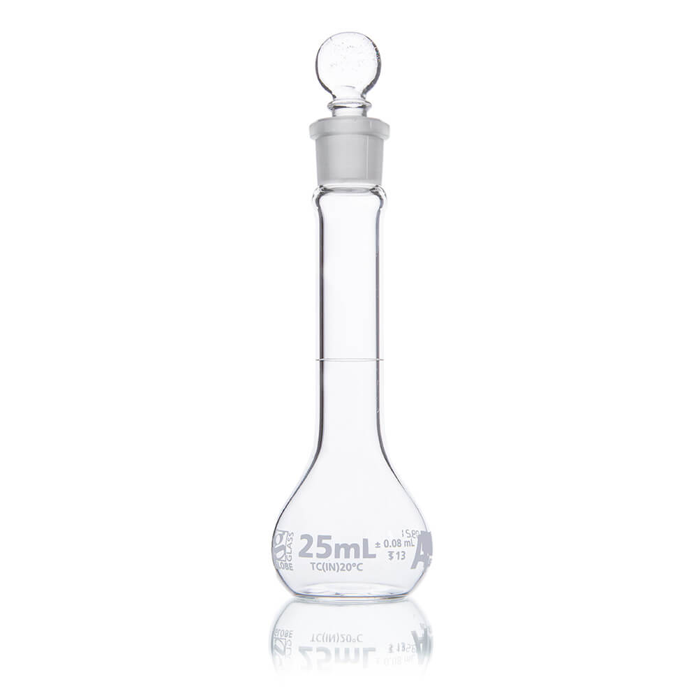 Flask, Volumetric, Wide Mouth, Globe Glass, 25mL, Class A, To Contain (TC), ASTM E288, 6/Box