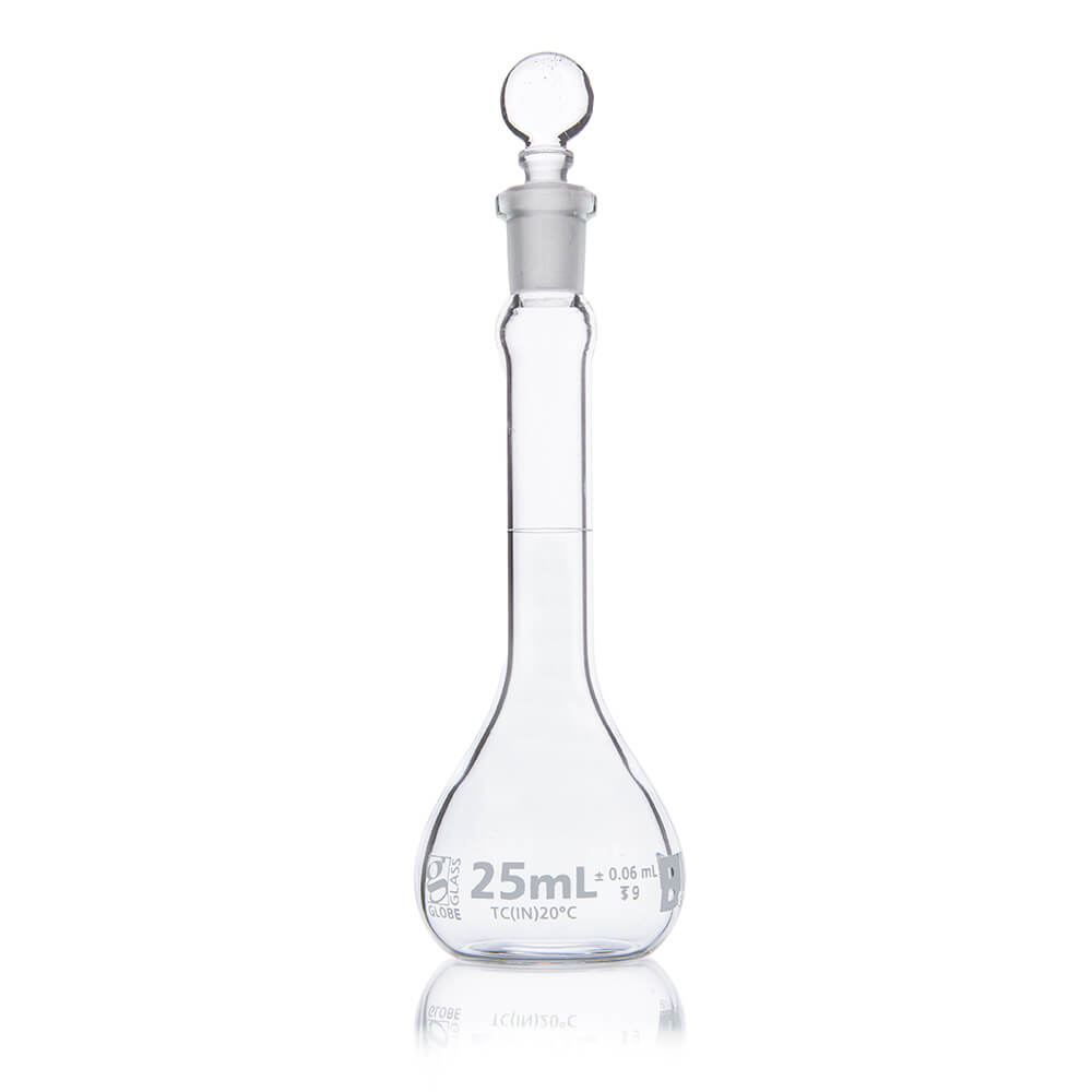Flask, Volumetric , Globe Glass, 25mL, Class B, To Contain (TC), ASTME288, 6/Box