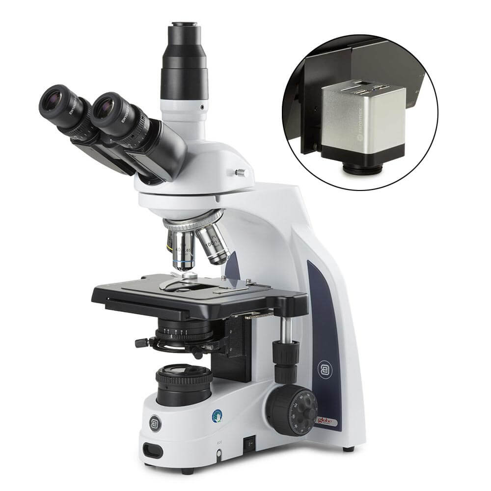 iScope trinocular microscope with EWF 10x/22mm eyepieces, PLI plan 4/10/S40/S100x oil IOS objectives, rackless stage and 3W NeoLED™ Köhler illumination, with HD-Mini camera, color High definition 2MP high speed camera with 13 inch HD screen, 1280 x 1080p, stand-alone usage with standard 32GB SD card, HDMI output. With built-in mouse-driven capture software