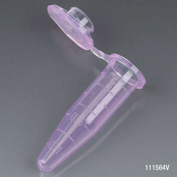 Microcentrifuge Tube, 1.5mL, PP, Attached Snap Cap, Graduated, Violet, Certified: Rnase, Dnase and Pyrogen Free, 500/Stand Up zipper closure Bag