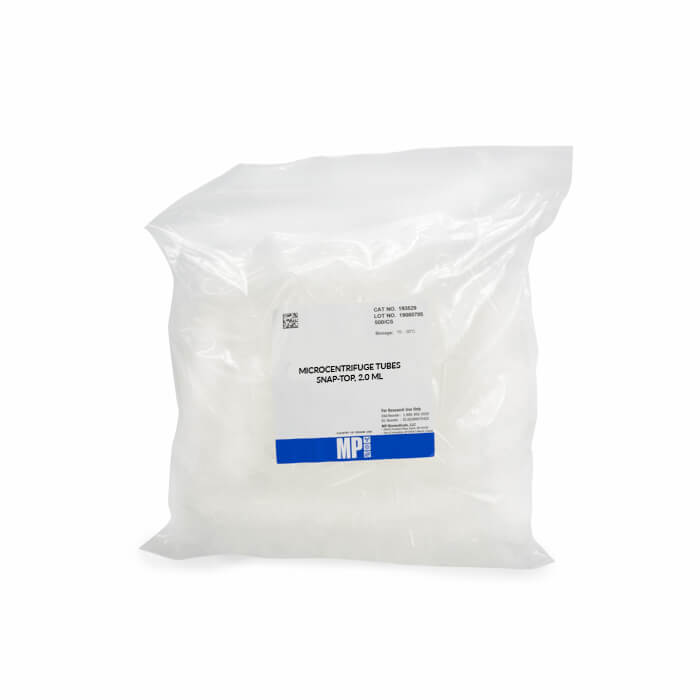 Clear, non-sterile 2.0 mL capacity polypropylene microcentrifuge tubes with attached snap-top caps. Autoclavable and graduated tubes with a side area for labeling. For use in routine molecular biology applications, including nucleic acid and protein extractions, sample processing, centrifugation, and storage of small volumes of reagents and other solutions.