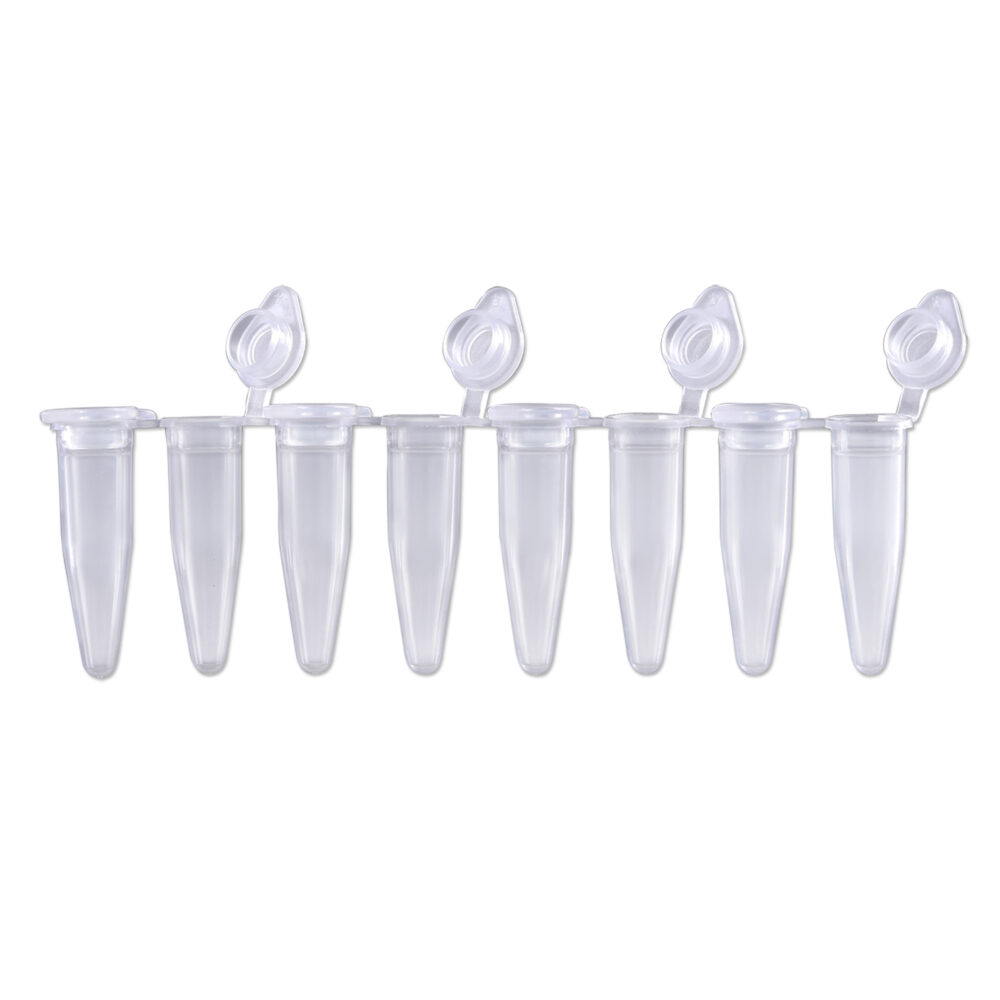 PureAmp™ 0.2mL PCR tubes and strips are available in seven different configurations including single tubes, eight strips, domed caps, and flat caps. Optically clear caps, and white tubes (for optimal fluorescence reflectivity) are also available for qPCR applications.