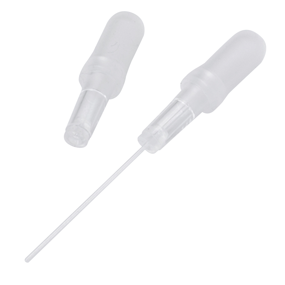 Pipetting aid for holding and draining disposable micropipettes, with rubber cap.