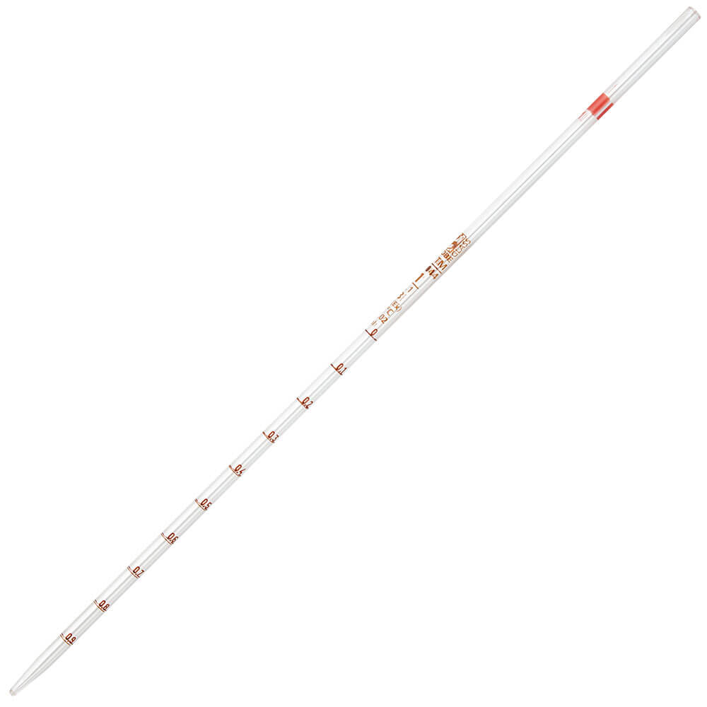 Pipette, Serological, Globe Glass, Reusable, 1mL, To Deliver (TD), 0.1 Graduations, Red Band, ASTM E1044, 6/Box