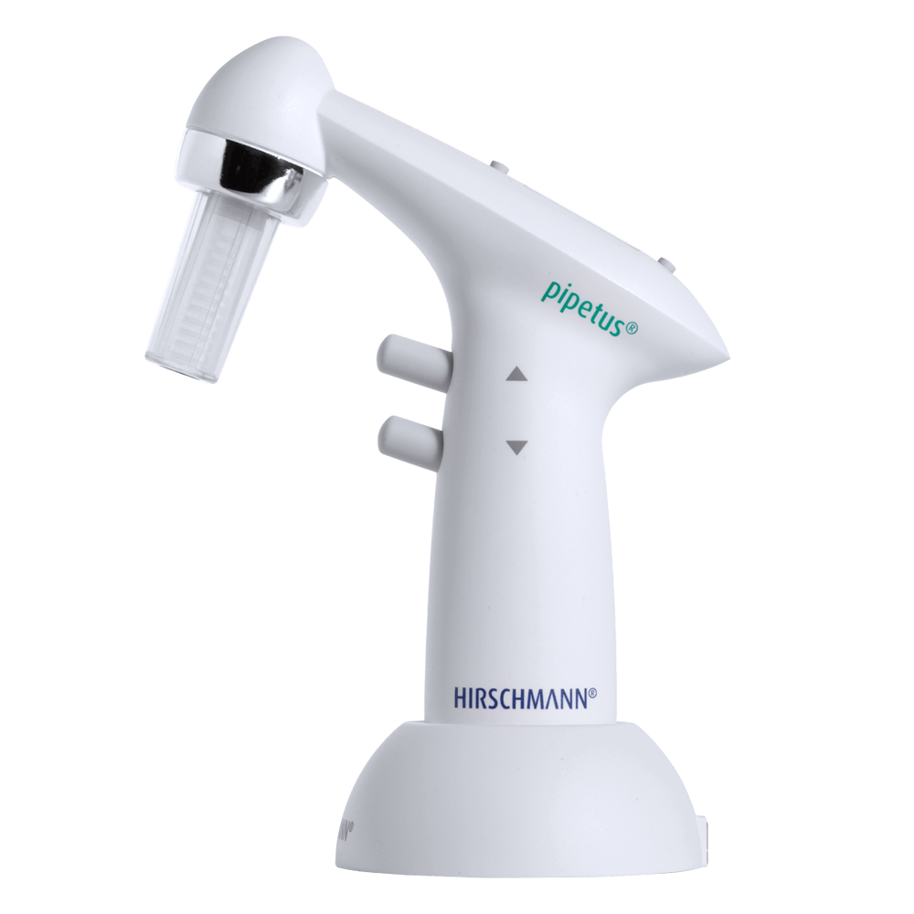 it combines many years of experience, innovative technology and superior-quality materials. Charging and dispensing of the medium is realised at the press of a button. Exact meniscus configuration is enabled through fine dispensing valves with valve pins made of ceramic compound. The valves are free of wear and offer maximum chemical resistance. An exact and continuously adjustable pumping and suctioning speed can be selected for both filling and venting within five precisely harmonised performance stages. The integrated colour display shows the pipetting mode, speed levels and charging status of the battery. Battery charging is realised without contacts and controlled by a microprocessor in an inductive charging station. The sophisticated ergonomic shape of pipetus