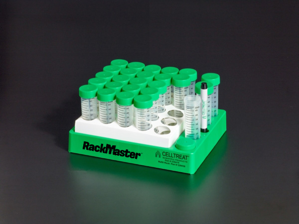 RackMaster plastic carrier protects paperboard centrifuge tube racks from deterioration caused by wet lab surfaces Bonus side compartments offer space to hold markers, caps, and additional tubes Refill RackMasters with paperboard centrifuge tube racks to reduce waste and save money compared to foam racks Plastic racks are reusable and autoclavable; paperboard racks are recyclable Available in 15mL and 50mL configurations