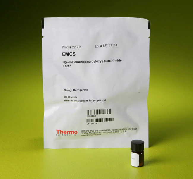 Thermo Scientific™ Pierce EMCS is an amine-to-sulfhydryl crosslinker that contains NHS-ester and maleimide reactive groups at opposite ends of a medium-length spacer arm (9.4 Ås).
