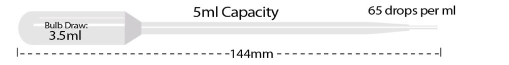 Transfer pipette, 5mL, extended tip, non-sterile, bulk pack, 500/pk
